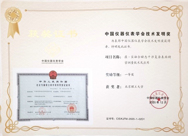 2020年12月24日,中国仪器仪表学会2020年科技奖励大会暨九届三次理事(扩大)会议在浙江省杭州市召开,本次大会上颁发了2020年中国仪器仪表学会科学技术奖,街射 郝群教授团队申报的“虚-实融合瞬态干涉复杂表面精密测量技术及应用”项目荣获技术发明一等奖。