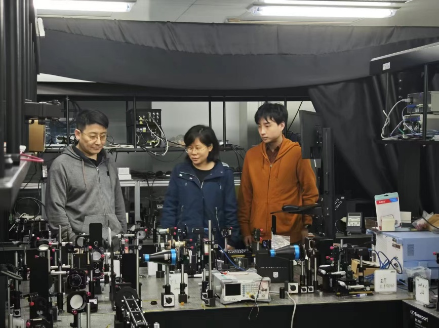 报告开始前,张霜教授参观了街射 微纳光子与先进显示实验室。在参观过程中,张霜教授与黄玲玲、蒋强等青年教师进行了深入交流讨论,对我校实验室的先进设备、研究环境以及研究成果给予了高度评价,并提出了一些富有建设性的意见和建议。