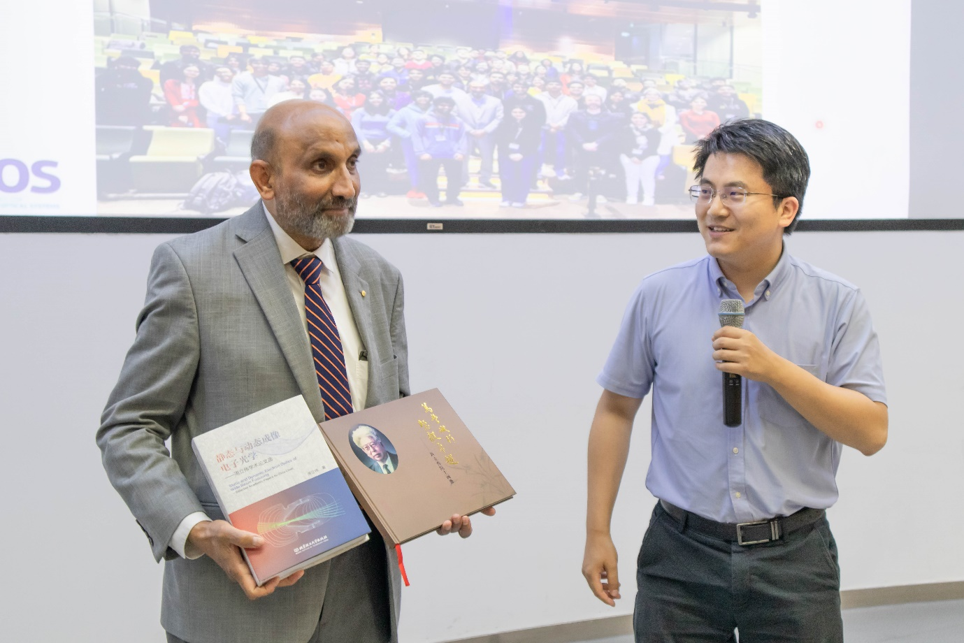 在提问互动环节,Jagadish与师生们深入探讨了新型材料与器件的潜在前景,其独到见解和前瞻性思维让在场师生都深受启发。而在最后的总结中,他热切地鼓励大家在科研的道路上要坚守信念,保持创新的精神,勇于挑战自我,并倡导大家加强合作,共同攻克科研难关。