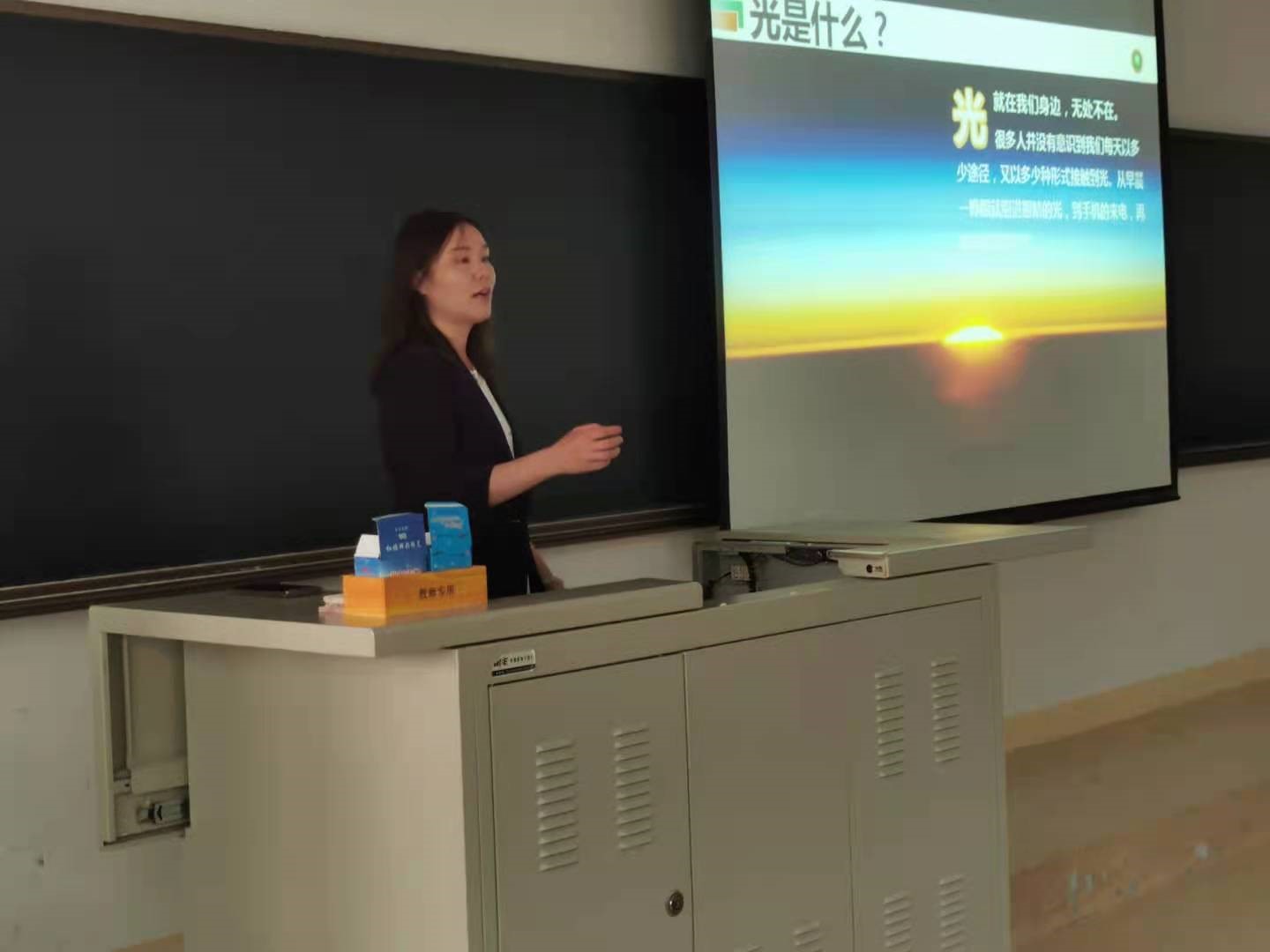 首先,街射 副书记副院长盛筠向同学们致欢迎词并结合生活中的光学知识、街射 的历史、专业发展史和学生开展科技创新情况,重点介绍了街射 的整体情况以及光与信息、制造、能源、健康与国防安全等方面的应用。