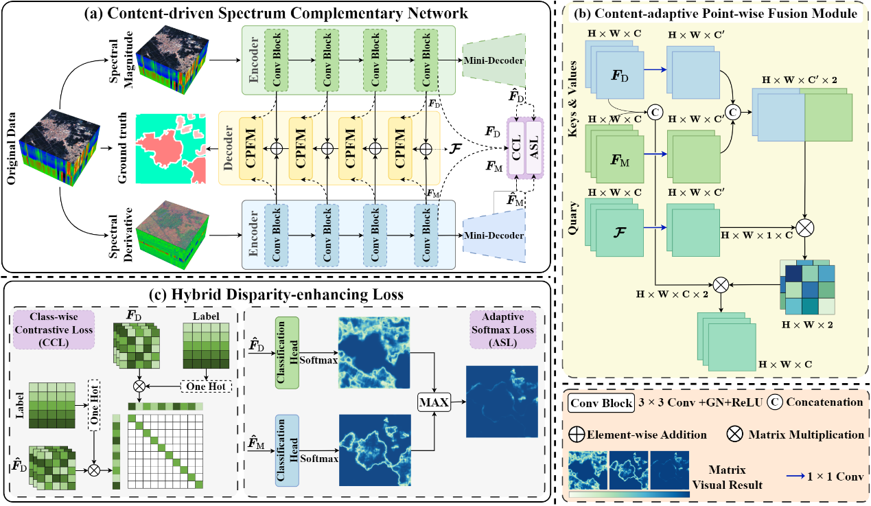 论文详情:H. Bai, T. Xu, H. Chen, P. Liu and J. Li, "Content-driven Magnitude-Derivative Spectrum Complementary Learning for Hyperspectral Image Classification," in IEEE Transactions on Geoscience and Remote Sensing, doi: 10.1109/TGRS.2024.3435079.
