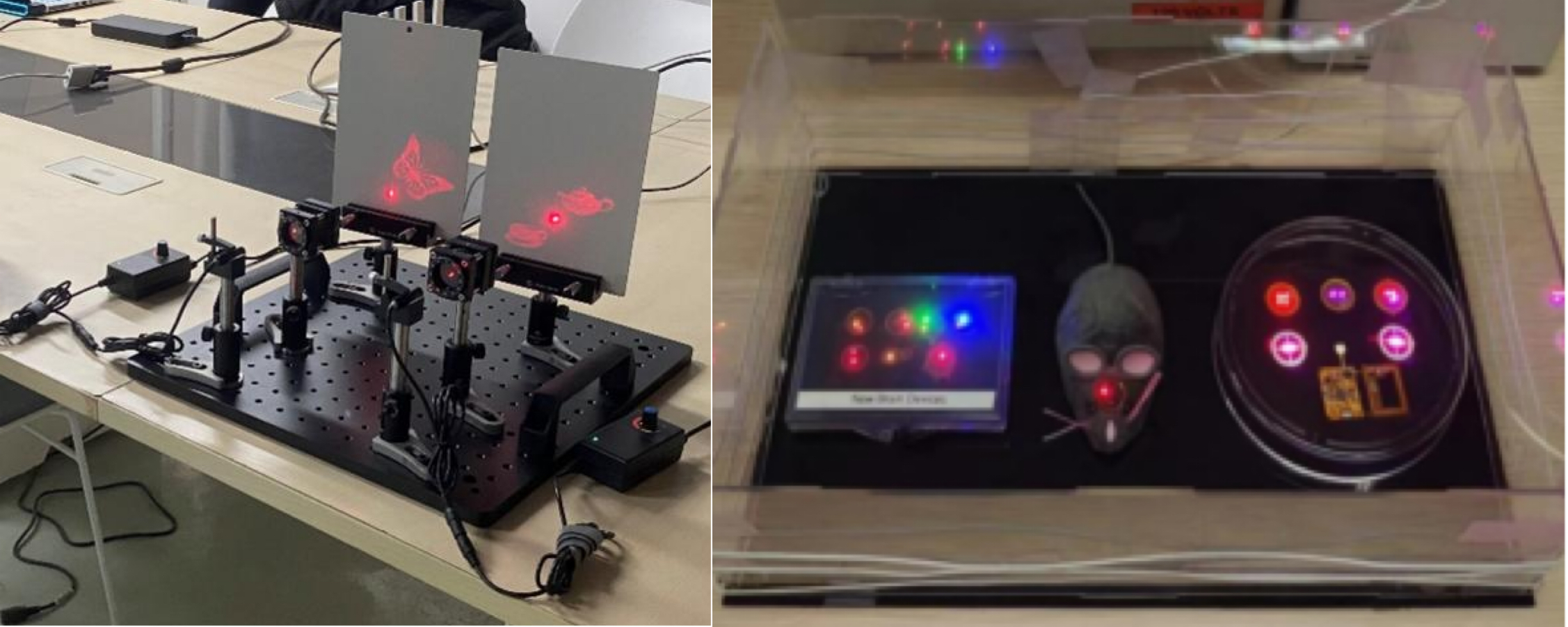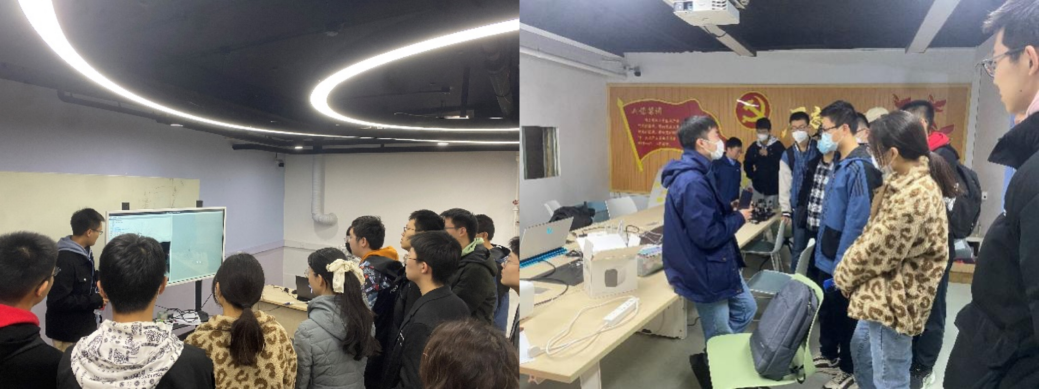 研究所的老师和研究生们为学生们准备了虚拟现实眼镜、增强现实眼镜、红外周视成像系统、视觉定位系统、超表面全息演示系统、可穿戴无线供电光电检测系统、柔性显示屏等最新科研成果的现场展示,吸引了同学们的围观和踊跃体验。