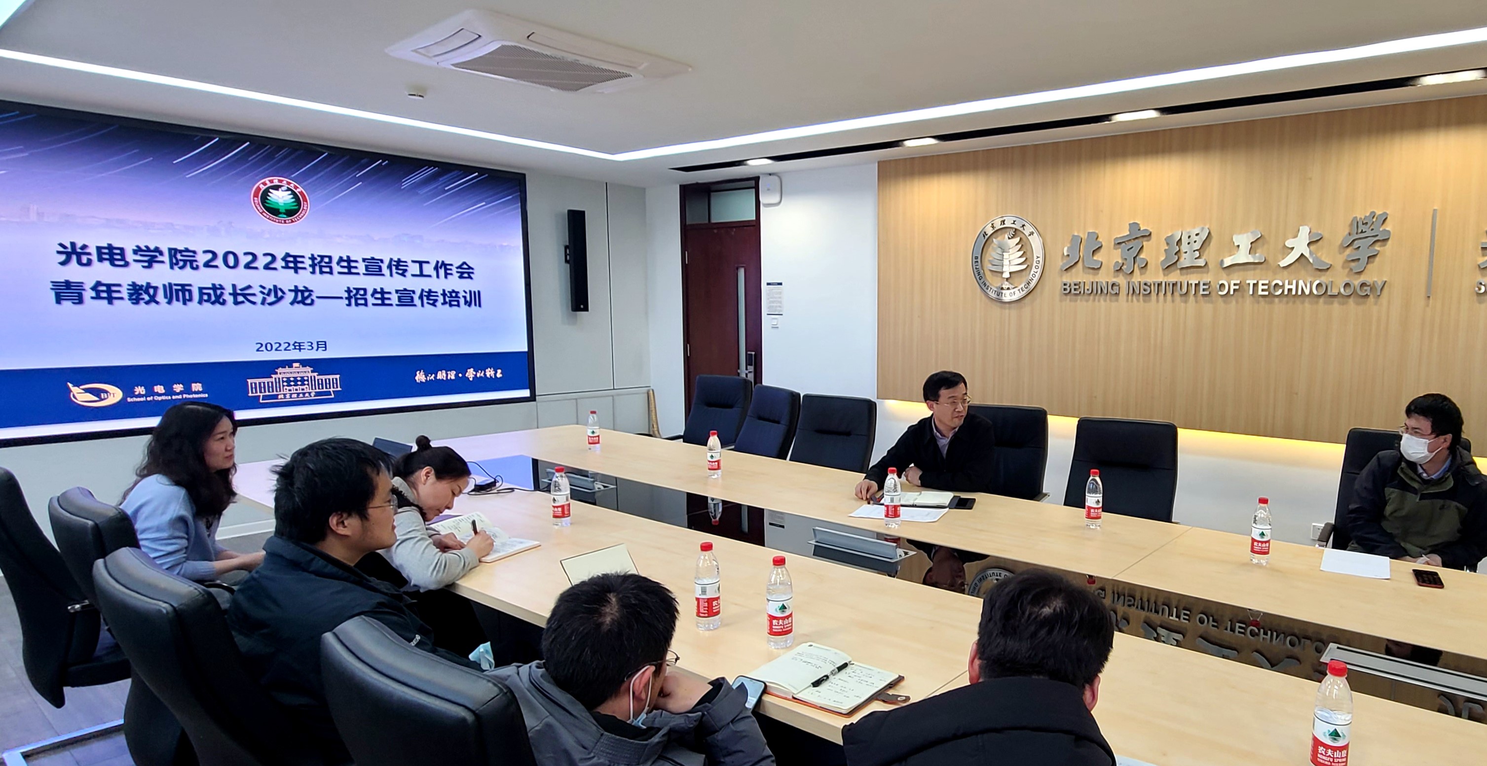 为推进招生宣传工作有效开展,完成2022年招生工作目标,3月4日下午,街射 在中关村校区1号光电楼217召开了2022年招生宣传工作会暨青年教师成长沙龙—招生宣传培训。学院党委书记董立泉、副院长王茜蒨及全体领航人参加了会议。学院党委副书记、副院长盛筠主持会议。