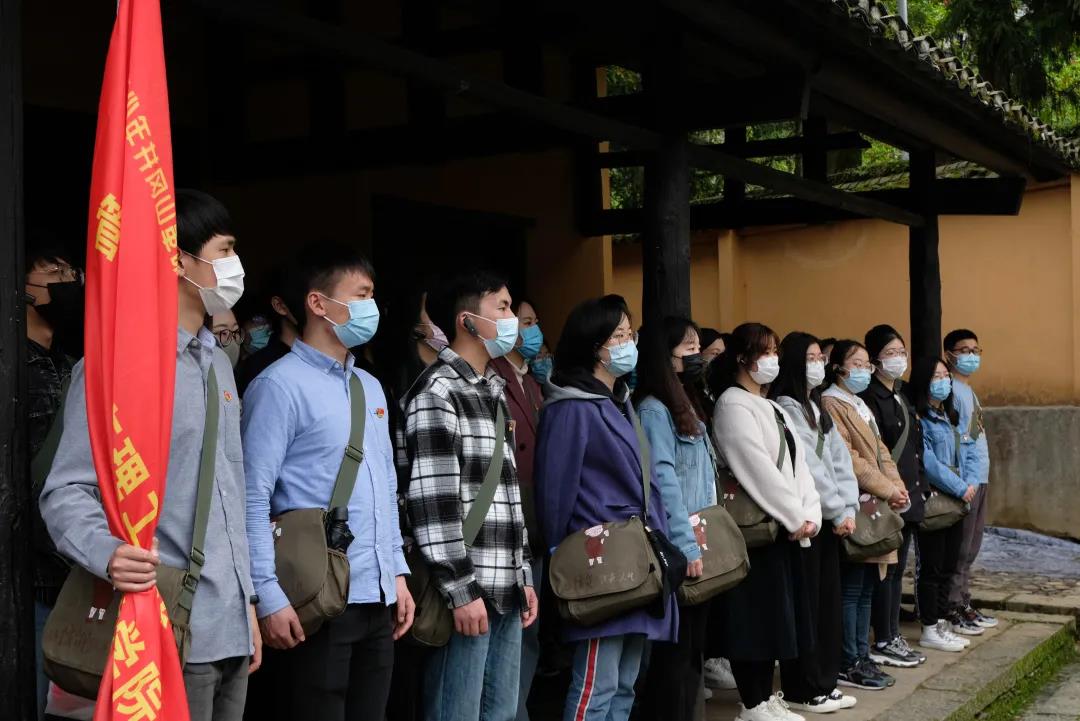 2年零4个月的时间,48000多名英烈英勇献身。花红映山,杜鹃啼血。在烈士陵园,学员们缓步走上108级台阶,向革命烈士敬献花圈、默哀致敬。一张张图片,一个个名字,一组组数据,直击心灵,触动心弦。之后学员们在革命烈士陵园,重温入党誓词。一声声誓词表达着学员们这一代青年人的初心与承诺。