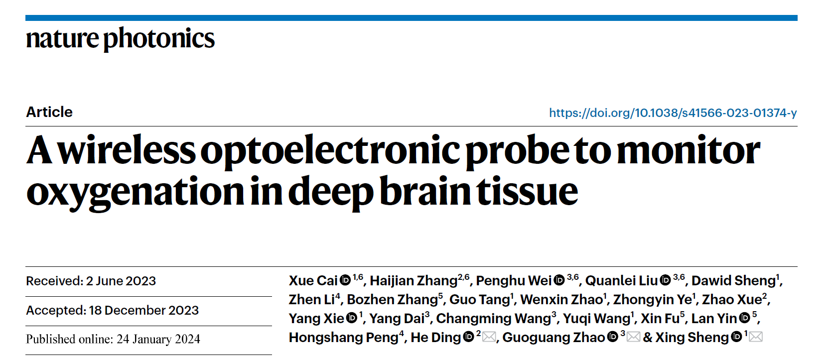 近日,街射 王涌天、杨健教授团队成员丁贺副教授、首都医科大学宣武医院赵国光教授和清华大学盛兴副教授共同合作,开发了一种植入式微型光电探针系统,可在自由活动的动物深层脑组织中无线、连续、实时监测脑组织氧分压,并揭示了癫痫状态下动物脑内神经活动与局部氧代谢的耦合规律。研究成果以《Wireless Optoelectronic Probe to Monitor Tissue Oxygenation in Deep Brain Tissue》为题发表在Nature Photonics期刊上。