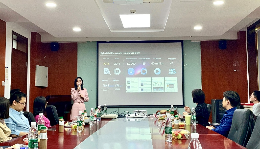 郭宸孜博士进一步探讨了科技期刊的未来布局,包括如何与国际顶级期刊如《Nature Photonics》等形成有效竞争,以及如何通过严格的审稿标准和多平台推广提升期刊的全球影响力。她提到,《eLight》的稿件来自全球37个以上的国家和地区,每篇发表的文章会通过10余个主流科学新闻平台和社交媒体进行推广,以确保研究成果的高可见性。