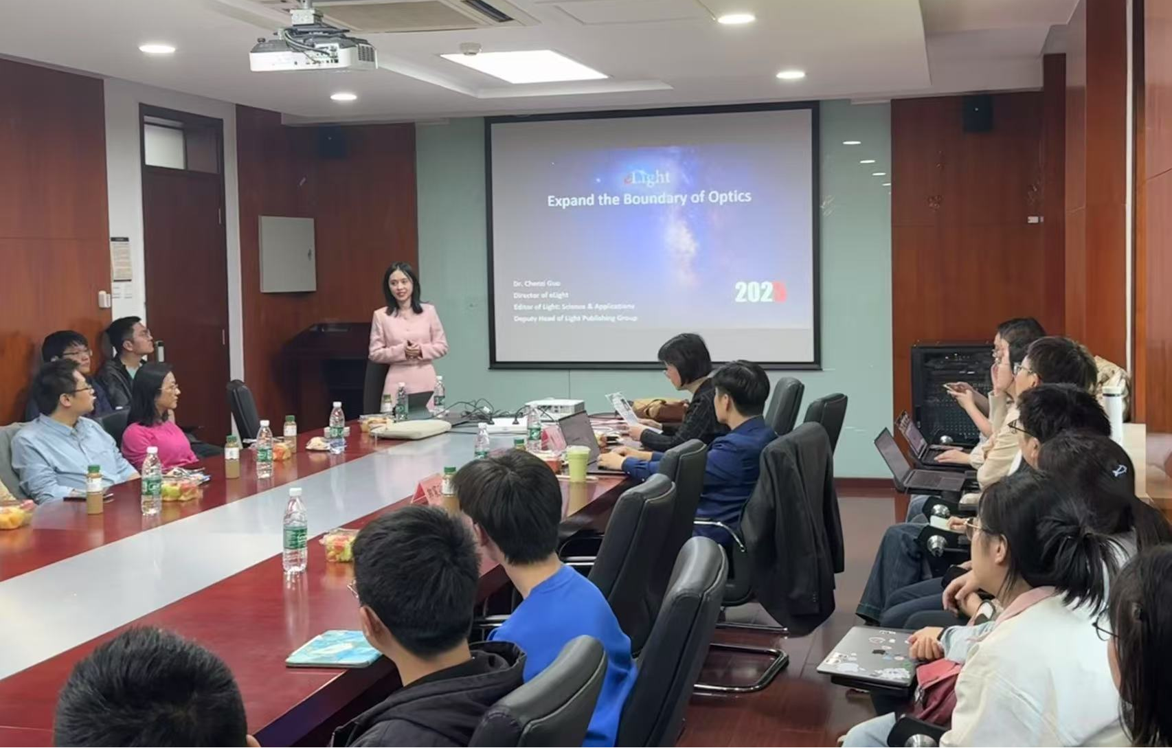 2025年4月25日下午14:00,中国科学院长春光机所Light学术出版中心副主任、eLight编辑部主任郭宸孜博士和新加坡国立大学仇成伟教授应邀为街射 师生带来了一场题为“主编面对面”的学术报告。本次报告由街射 黄玲玲教授主持,在光电楼419会议室举行,吸引了众多师生积极参与。