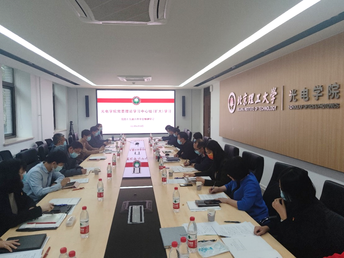 为深入学习贯彻党的十九届六中全会精神,11月19日下午,街射 在中关村校区南门1号光电楼217会议室开展党委理论学习中心组(扩大)学习,并邀请马克思主义学院李京副教授做深入解读,学校党委书记赵长禄全程参加并现场指导学习。党委理论学习中心组成员、教工党支部书记及学生党支部书记代表参加了学习。学院党委书记董立泉主持学习。