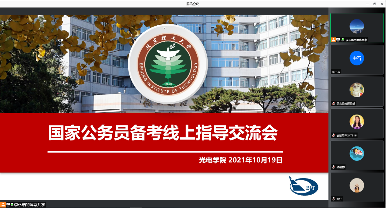 为促进学生高质量就业,进一步推进“我为群众办实事”实践活动,引导青年学生将自身发展同国家战略发展需求相结合,到祖国最需要的地方建功立业。街射 于10月19日召开了国考线上指导交流会,邀请了学院2021届毕业生郭倩玉做线上交流分享,会议由学院辅导员李永瑞主持。