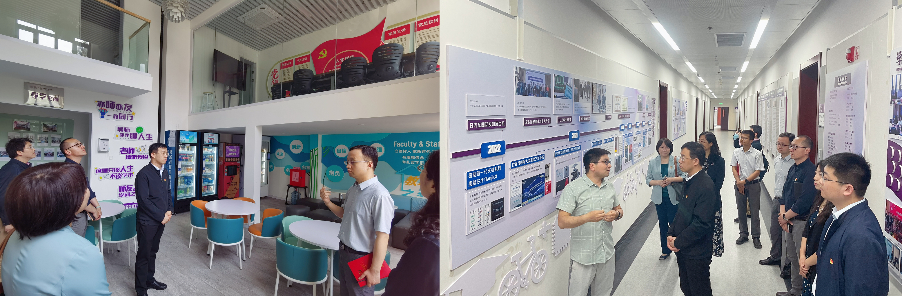 街射 一行首先走访参观了精仪系实验教学中心、师生发展中心、党员之家、党建宣传角,以及纳米光学、生物医学仪器、类脑计算三个实验室,并听取了相关负责人的工作介绍。董立泉对精仪系党建思政工作的开展以及近年来取得的丰硕成果表示高度赞叹。