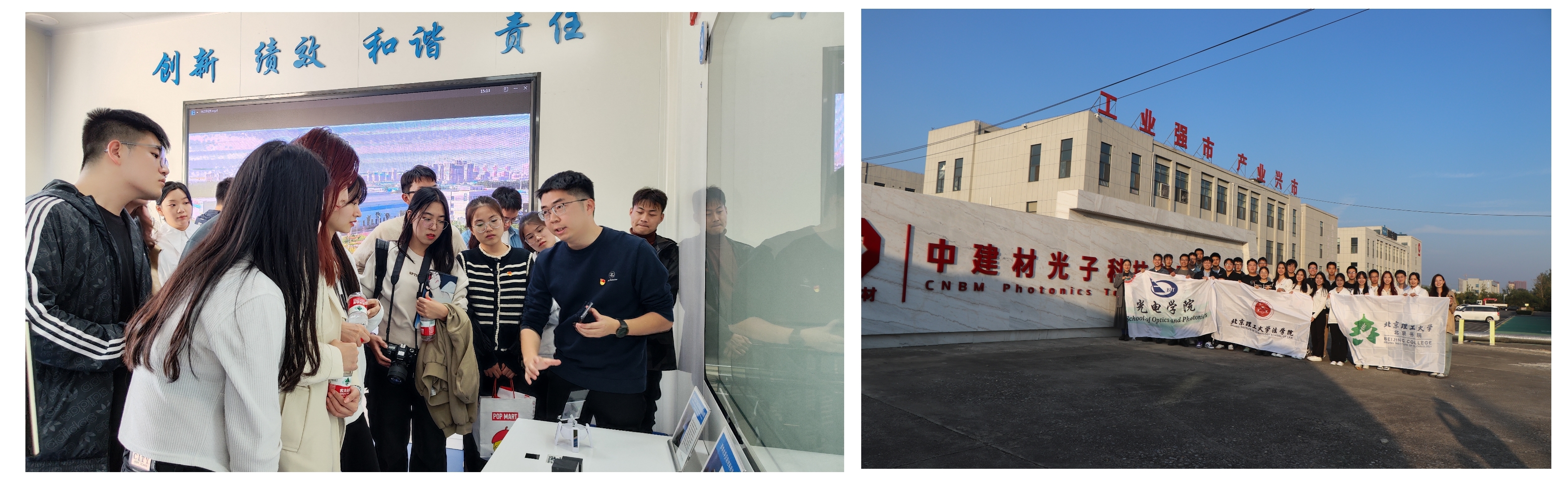 21日,师生一行来到中建材光子科技、光芯科技有限公司进行交流实践。街射 副书记、副院长盛筠,北京学院副院长李晋,法学院副书记、副院长马晓龙,书院党委组织员方婳婳,枣庄经济开发区管委会副主任陈广夫,中国建材总院北京分公司党总支书记、总经理、中建材光子科技、光芯科技董事长贾金升,中建材光芯科技有限公司党支部书记、总经理张兵强,中建材光子科技有限公司党支部书记、总经理张洋等校企代表共同为街射 书院党委党员教育培训基地举行揭牌仪式,仪式由张洋主持。