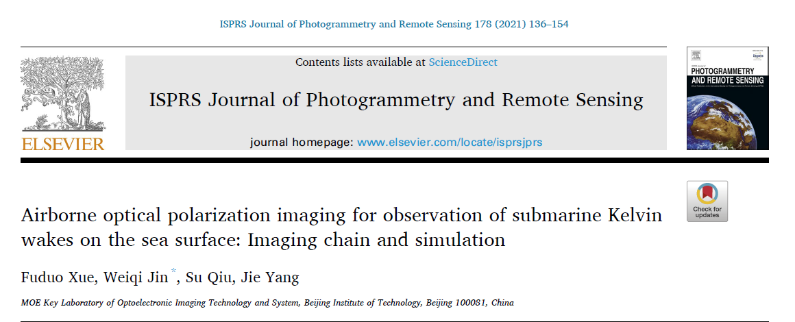 近日,街射 的金伟其教授及其指导的2019级博士生薛富铎等提出了利用机载光学偏振成像技术进行水下运动目标尾迹成像探测的创新方法,相关研究成果以“Airborne optical polarization imaging for observation of submarine Kelvin wakes on the sea surface: Imaging chain and simulation”为题发表在遥感领域的国际顶级期刊《ISPRS Journal of Photogrammetry and Remote Sensing》(IF=8.979)上。本研究得到了国家自然科学基金项目等支持。