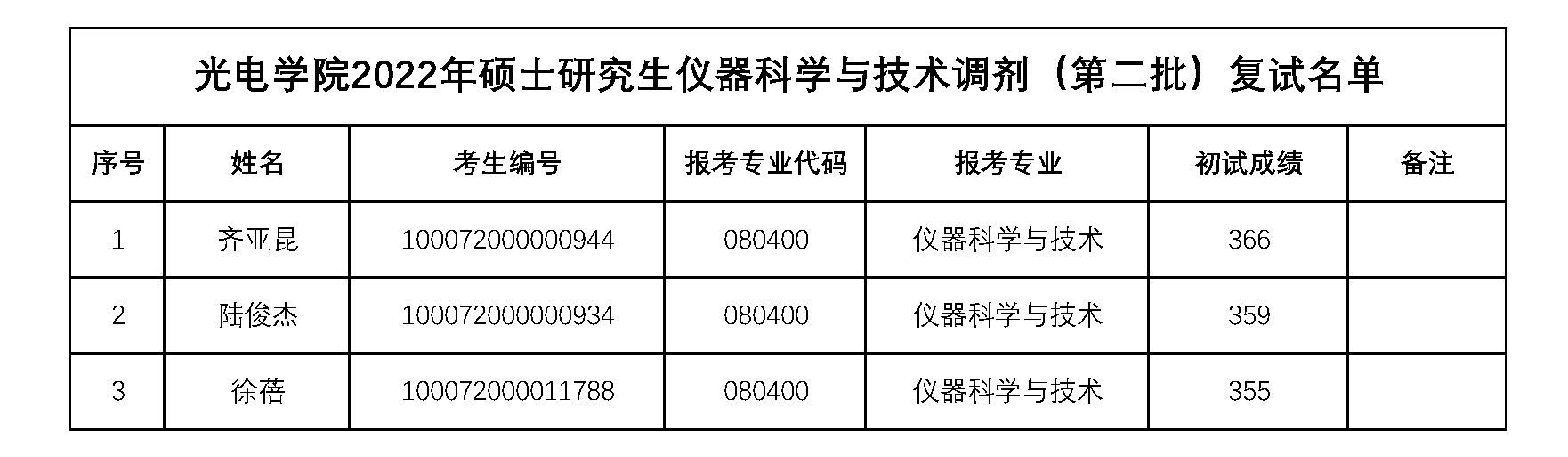 街射 2022年硕士研究生仪器科学与技术调剂(第二批)复试名单