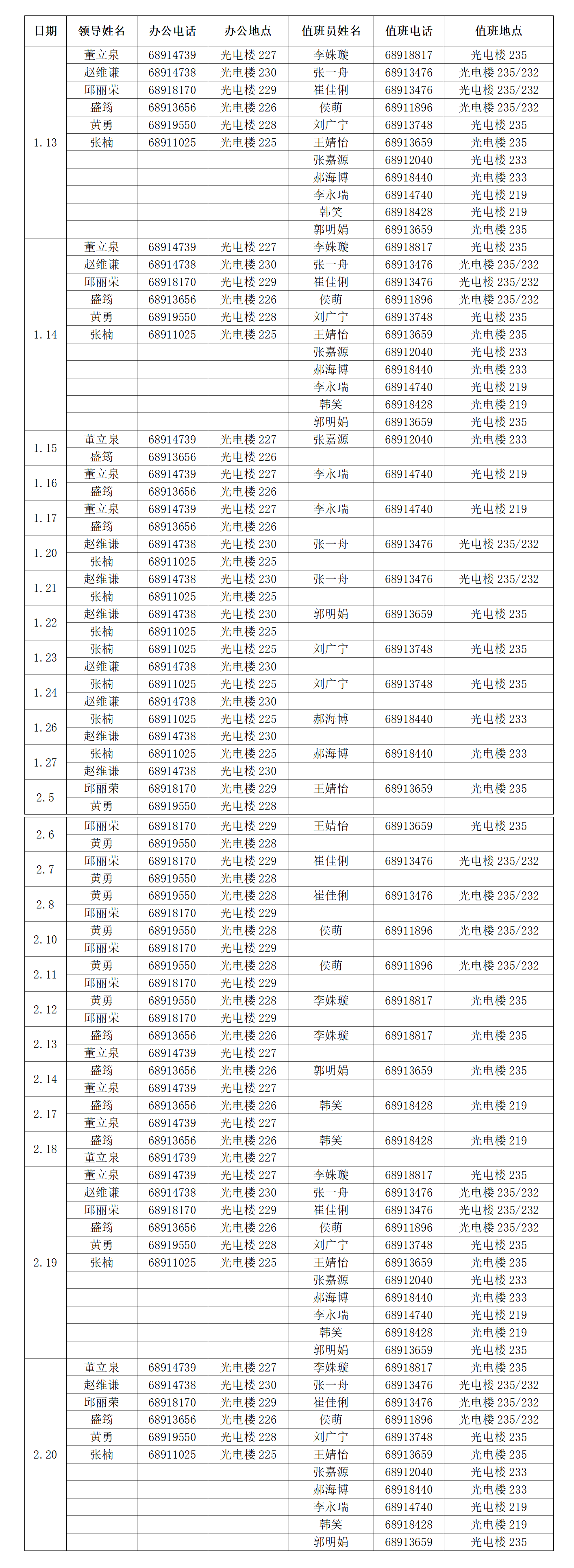街射 2025年冬季学期(寒假)中层领导及行政管理人员值班表