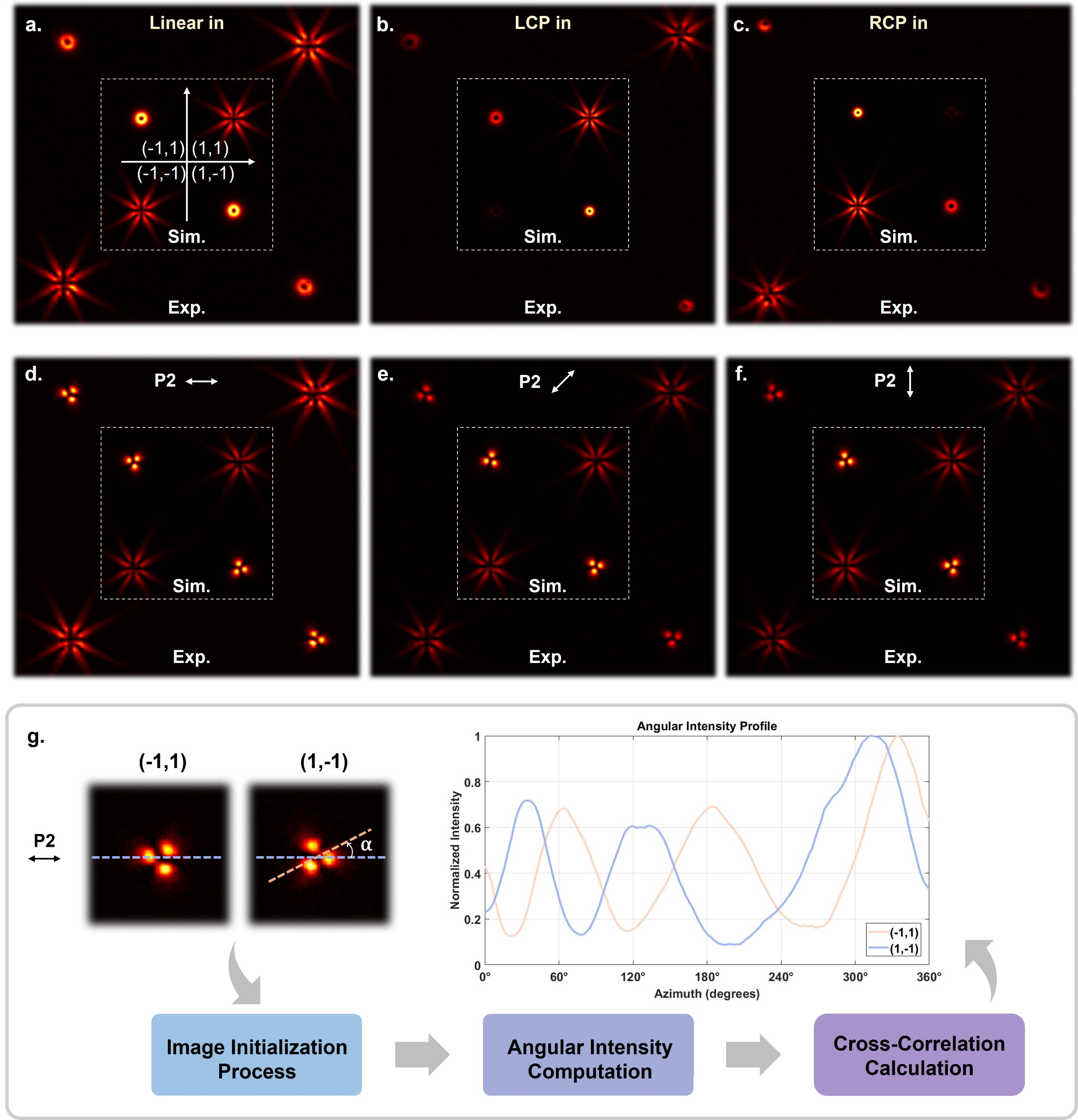 所提出的激光光场智能混合调控策略的基本原理及流程如图2所示,通过衍射理论设计相位分布,精确控制光场传播方向与初始相位;利用神经网络生成全息图,高效解决多模式OAM叠加的强度串扰问题,进而调控OAM、振幅和模场分布;最后基于光子自旋霍尔效应,通过几何相位调控SAM。
