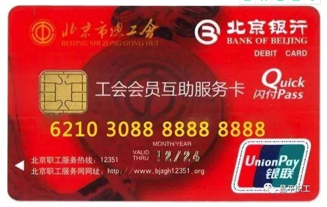 3、自提交申请一个月后/收到第一个月工资后,持本人身份证去就近的北京银行办理京卡·互助服务卡(即北京市工会会员卡)。